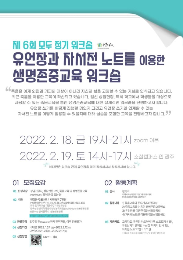 <모두 정기워크숍 안내 - 유언장과 자서전 노트를 이용한 생명존중교육 워크숍>