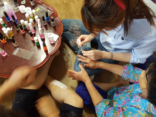 경로당에서는 하계자율학습기간을 맞이하여 어르신 스스로 나를 가꾸고 꾸며봄으로써 기분전환과 동시에 자존감을 높일 수 있는 특화프로그램을 진행 하였습니다. 어르신들이 손이 반짝거린다며 소녀 같은 모습으로 기뻐하시는 모습에 프로그램을 진행하는 저희가 더 행복한 시간 이었답니다~ ^-^