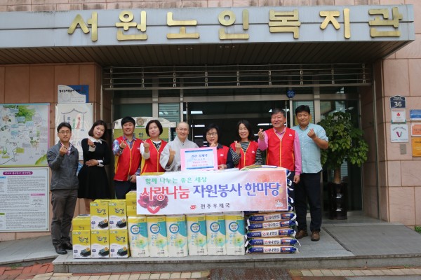 이 날 행사에 참여한 전주우체국 직원들은 추석 명절을 맞아 소외될 수도 있는 어르신들에게 식사를 대접해 드리고 가족과 같은 따뜻한 정을 나누는 소중한 기회가 되었다며 오히려 우리 복지관과 어르신들께 감사의 마음을 전해주셨습니다.