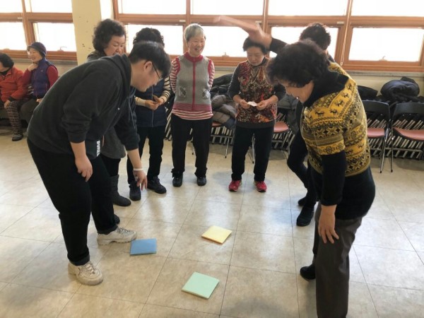 제기차기, 딱지치기, 투호던지기, 신발던지기, 병뚜껑멀리보내기, 팽이치기 총 6가지 놀이를 진행하였는데요~ 먼저 놀이를 진행하기전 가볍게 국민체조로 몸을 푼 후 어르신들이 어린시절 실력을 발휘하시거나 처음 해보시는 놀이에 흥미를 느끼시며 아주 즐겁게 행사에 참여하셨습니다!