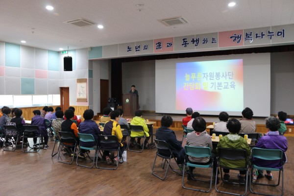 복지관 회원으로 구성된 늘푸른자원봉사단이 간담회와 자원봉사 교육을 진행했습니다.