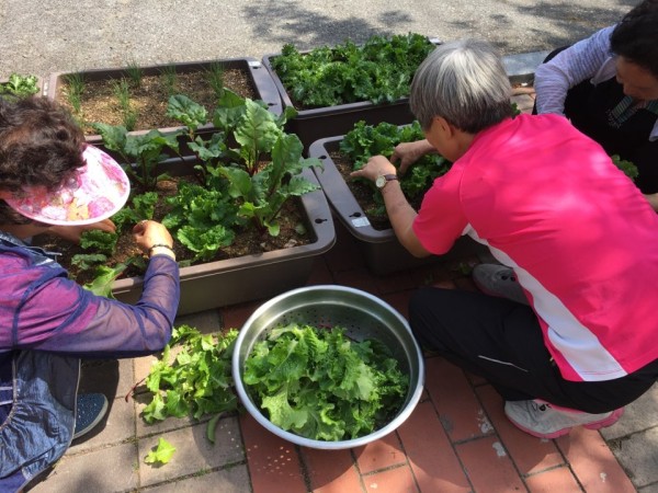 수확한 작물들은 오늘 복지관 점심식사때 맛있는 채소무침으로 활용하였으며