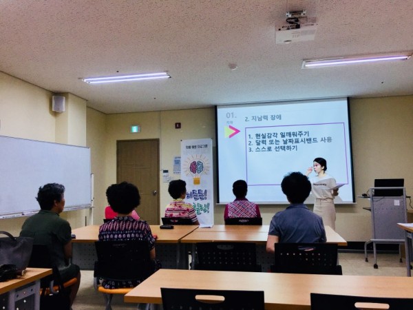 마지막 시간에는 담당자가 진행하는 '치매예방특강'과 '음악치료'가 진행되었으며
