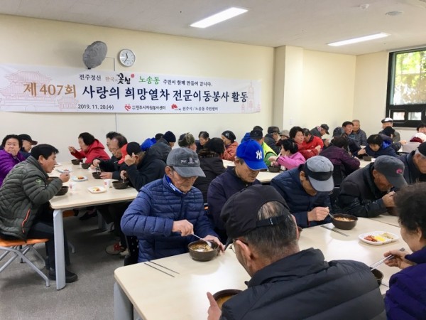 전주시자원봉사센터의 '사랑의 희망열차 전문이동봉사'로 전주시 노송동 일대 어르신들에게