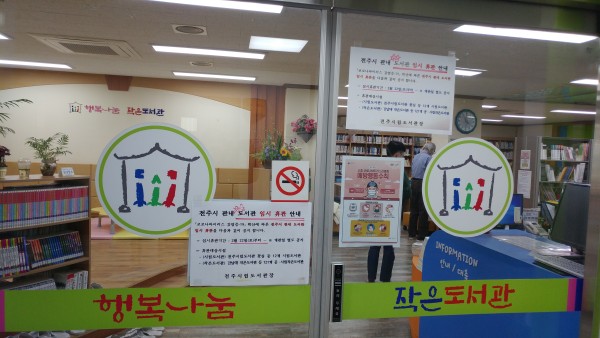 행복나눔 작은도서관은 코로나19 바이러스의 지역사회 감염 확산 예방을 위하여 전주시의 요청에 따라