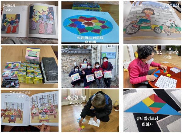 또한, 창의적인 조형 능력을 향상시킴으로 치매예방에 도움이 되는 칠교놀이세트도 전달해드렸습니다.