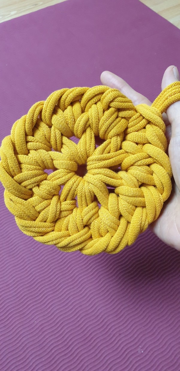 ■ 내용: 산업폐기물인 양말목을 재활용하여 생활 소품(방석) 만들기 체험을 비대면으로 진행함
