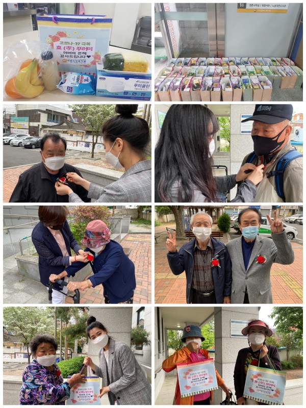 기린봉노인복지관에서는 복지관 경로식당을 이용하는 복지회원 어르신 50명을 대상으로 5월 8일 어버이날을 맞이하여 어버이날 행사를 진행하였습니다.^^