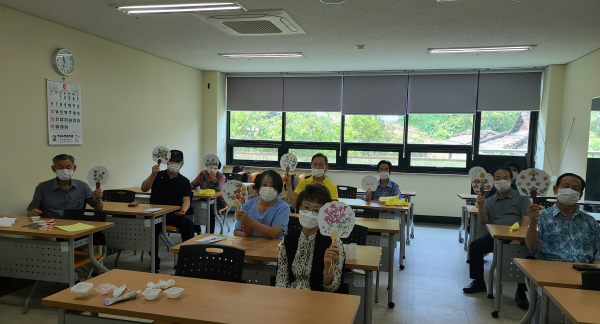 프로그램 참여한 어르신 10분께서는 직접 만든 압화부채로 시원한 여름을 보낼 수 있겠죠??