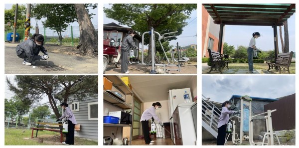우리복지관에서는 코로나19 감염예방 및 농촌동 마을 어르신들의 건강관리를 위하여 어르신들이 자주 이용하는 경로당 내·외부와 마을에 있는 운동기구, 정자, 버스정류장 등을 중심으로 소독 및 하수 해충 방역을 꾸준히 진행하고 있습니다.
