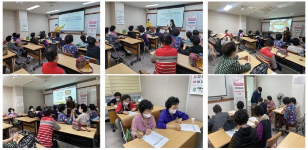 이에 지난 17일 프로그램을 시작하기에 앞서, 라포 형성을 위한 참여자 소개 및 조 편성과‘행복한 노년의 삶은 무엇인가’의 주제로 특강, 척도를 활용한 사전검사를 진행하였습니다.