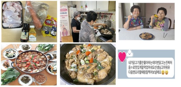 1회기 주제는 ‘찜닭’으로 2인1조 총10개조로 나누어 복지관에서 해당 재료를 수령하여 각 조별 가정 내에서 찜닭을 조리한 후, 조별 또는 이웃에게 전달하는 방식으로 진행되었습니다.