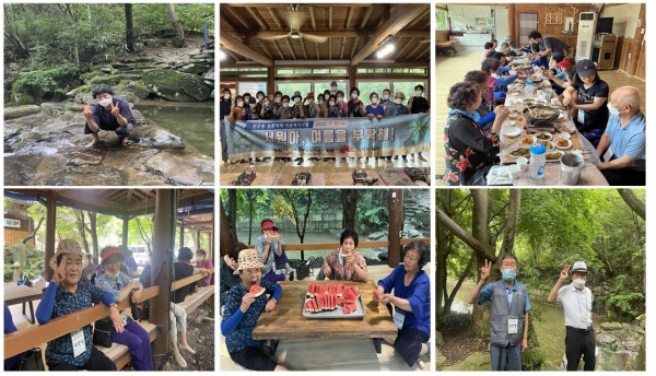 무더운 여름을 맞이하여 코로나19 상황 속에서 지친 농촌지역 어르신들에게 거리두기 생활 속에서 벗어나 야외활동에 대한 욕구를 충족시켜 드리고, 어르신들 간의 유대관계를 돈독히 하여 화합의 시간을 마련하고자 완주군 동상면에 위치한 ‘우리동네산장’에 방문하여 어르신들의 마음을 정화시켜드렸습니다.