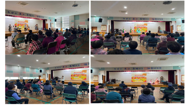 전통음악을 중심으로 김정아 무용단 및 무직회사의 앙상블이 방문하여 일상회복을 위한 예술 치유 공연을 진행하였습니다. 이번 공연에도 많은 어르신들이 관심을 가지고 참석해 주셨습니다.