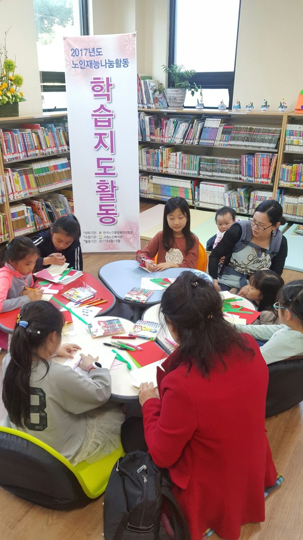 노송 작은도서관에서는 지역 내 초등학생과 함께하는 독서지도 프로그램 ‘책과 함께 상상 더하기’은 2017년 4월부터 9월까지 매주 목요일마다 진행하고 있습니다.