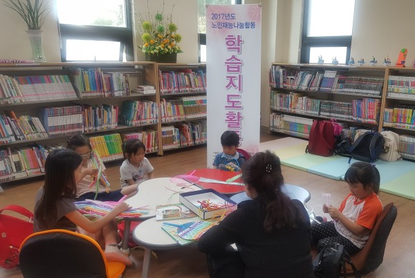 노송 작은도서관에서는 지역 내 초등학생과 함께하는 독서지도 프로그램 ‘책과 함께 상상 더하기’은 2017년 4월부터 9월까지 매주 목요일마다 진행하고 있습니다.