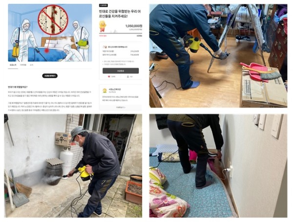 이번 모금활동으로 빈대와 같은 해충으로부터 위협받는 주거 취약 어르신들의 가정에 전문가의 방역작업을 지원할 수 있었습니다.