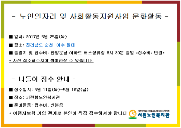 [2017.05.25]노인일자리 및 사회활동지원사업 참여자 문화활동 일정 안내