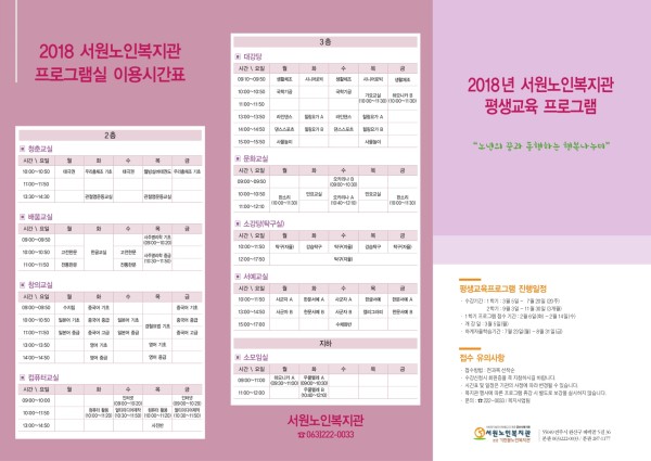 [2018 수강안내] 2018 서원노인복지관 평생교육프로그램 안내리플렛