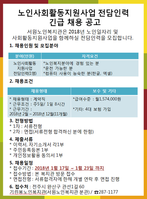[모집공고] 노인사회활동지원사업 전담인력 추가 모집안내 - 마감
