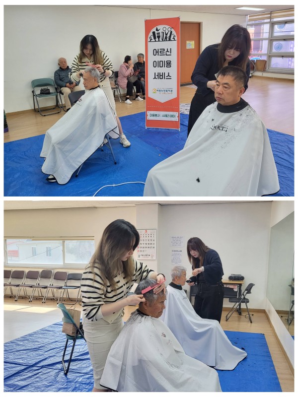 서비스를 받으신 어르신들께서는 “날씨도 따뜻해지고 머리도 정리하니 기분이 한결 가벼워졌다.”며 밝은 표정을 지으셨고, 서로의 변화를 칭찬하며 즐거운 시간을 보내셨습니다. 현장은 웃음과 대화가 어우러진 따뜻한 분위기 속에서 마무리되었습니다.