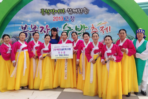 지난 6월 21일(금)~23일(일)까지 진행된 "풍천장어와 함께하는"2013고창 복분자와 수박축제에 서원노인복지관 우리춤체조반이 참여하여 우수상을 수상하였다.