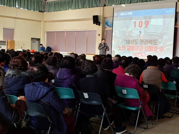 어르신들이 안전하게 활동할 수 있도록, 완산경찰서에서 보이스피싱예방교육, 교통안전교육을 진행하였고