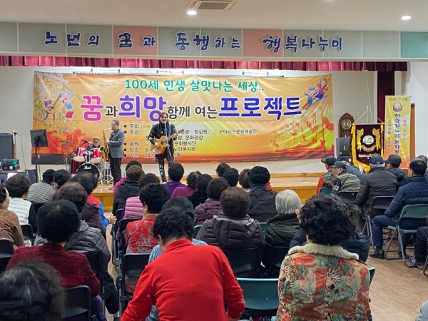 우리복지관에서는 오아시스공연단과 연계하여 어르신들을 위한 공연을 진행했습니다. 가수 공연과, 난타, 재밌는 레크레이션까지 어르신들이 겨울 추위를 잊고 즐거운 시간을 보낼 수 있었습니다.
