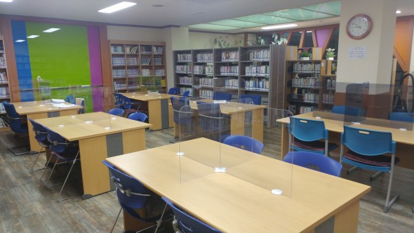 열람실 책상 칸막이를 설치하였으며, 8개 였던 열람실 책상을 6개로 줄여 책상간 간격 조정하였습니다.