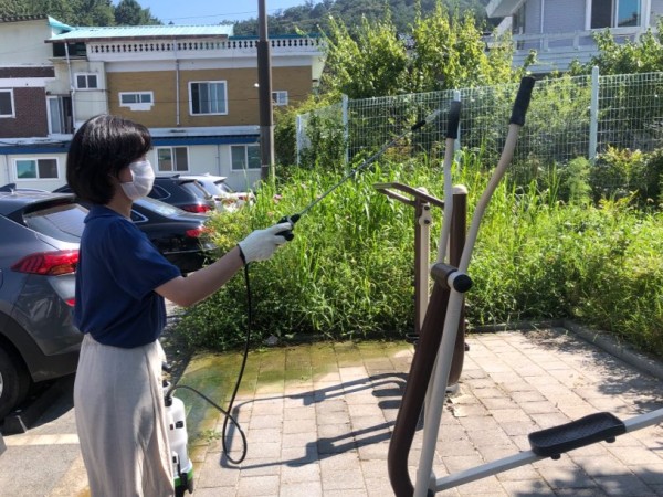 우리 복지관에서는 코로나19 감염예방 및 경로당 어르신들의 건강관리를 위하여 연계 경로당 12개소의 내부와 인근 공원을 방문하여 7월부터 격주로 방역작업을 진행하고 있습니다.