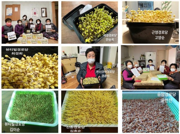 콩나물과 새싹보리를 각각 7일~10일 정도의 시간동안 경로당 어르신들이 각자 가정에서 정성을 담아 키워