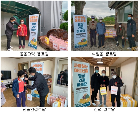 어르신들께 감사하는 마음으로 카네이션과 건강에 좋은 견과류 등 선물 전달을 하였습니다. 어르신들이 선물을 받으시고 매우 좋아하시고 행복해 하였습니다.