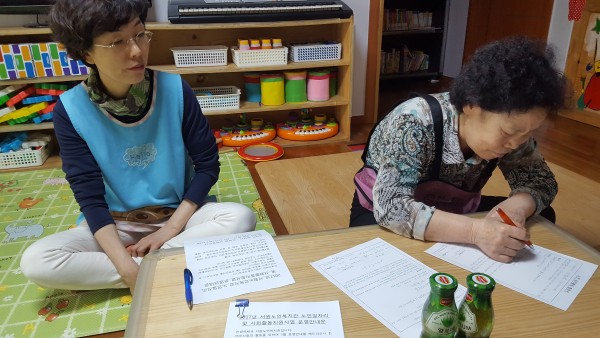 2017년 노인일자리 및 사회활동지원사업에 참여하는 어르신들을 대상으로 수요처(수혜자)에 배치를 해드렸습니다. 9개월 동안 일하실 장소 및 수요처 대표자와 만나는 시간을 가져 소속감이 증진이 되었습니다.