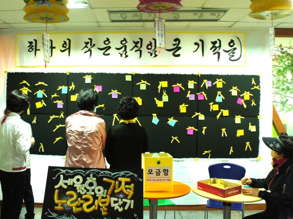 희생자와 그 유가족의 아픔을 함께 나누기 위해 우리 복지관 회원 및 직원들이 함께 캠페인과 모금활동에 참여하였습니다.