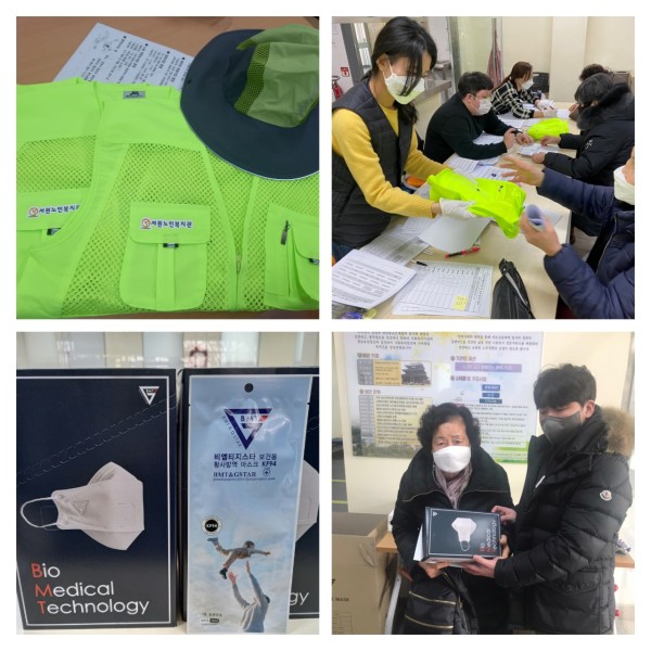노인사회활동지원사업 참여자 활동복과 모자, 마스크(KF94) 배부