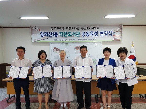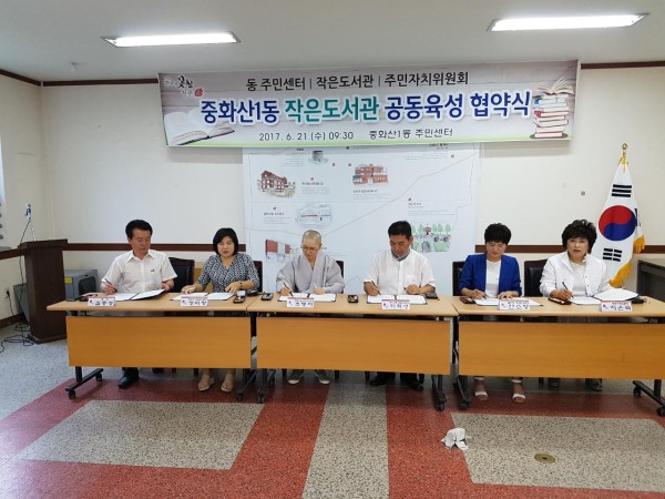 주민자치위원회, 주민센터, 행복나눔 작은도서관의 '작은도서관 공동육성 협약서'를 체결하였습니다.
