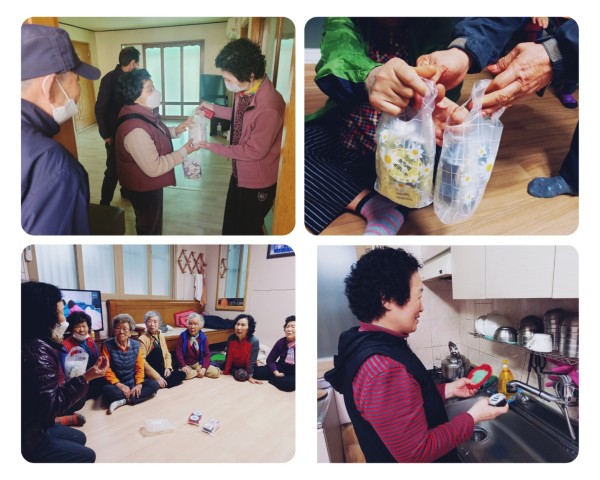 경로당에서는 반갑게 맞아주시며, 에코비누 및 수세미 기부에 감사함을 표현 하였습니다
