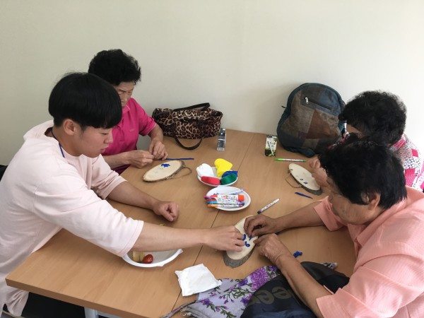 사회복지하계실습의 일환으로 실습생이 기획한 프로그램 “똑·똑·똑 (문을 똑, 마음을 똑, 똑똑! 노크하세요)”을 진행했습니다. 다과시간을 통해 어르신들이 서로에 대해 알아가는 시간을 가졌고, 개성있는 문패 만들기 활동을 했습니다.