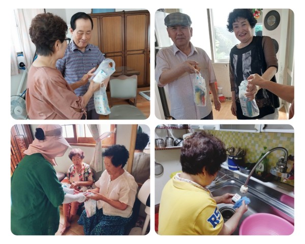 어르신들께서는 열심히 만든 에코비누와 수세미를 정성들여 포장하였고, 경로당 배포를 진행하였습니다