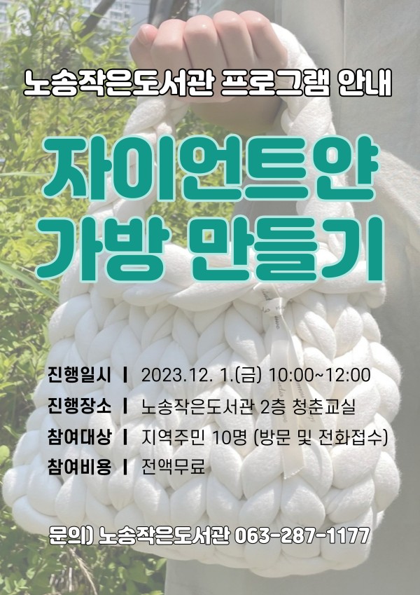 [2023.12.1.] 노송작은도서관 '자이언트얀 가방 만들기' 프로그램 진행