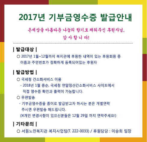 [안내] 2017년 서원노인복지관 기부금영수증 발급안내