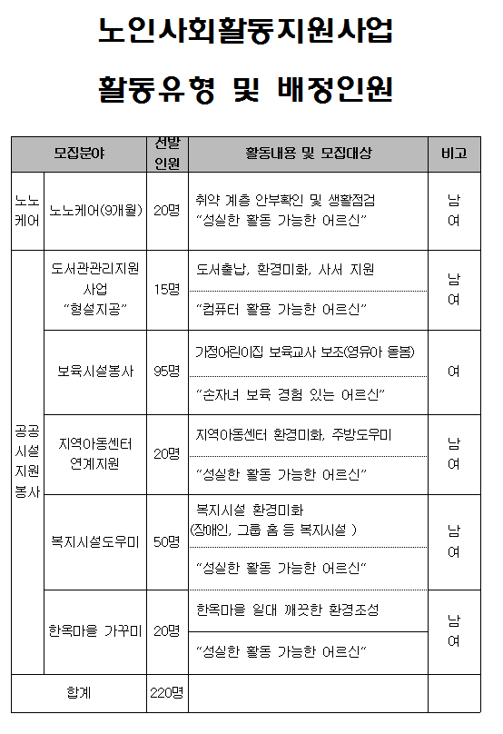 노인사회활동지원사업(구, 노인일자리) 공익활동 9개월 활동유형