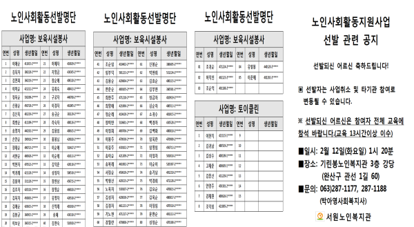 2019 노인사회활동지원사업 선발자 공지사항 안내